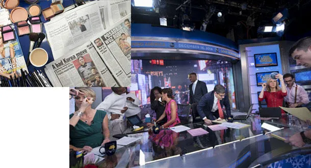 التحضيرات الأخيرة قبل انطلاق البرنامج الصباحي - ادوات الماكياج اختلطت بعناوين الصباح على مائدة المذيعة سبنسر «نيويورك تايمز»