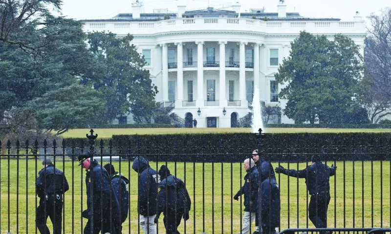 رجال أمن من {الشرطة السرية} يمشطون الحدائق المحيطة بالبيت الأبيض صباح أمس (أ.ب)