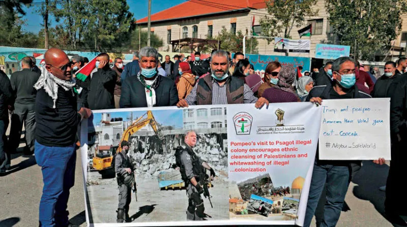 مسيرة فلسطينية في نوفمبر قرب مستوطنة «بساغوت» التي أُقيمت على أراضي البيرة بالضفة (أ.ف.ب)