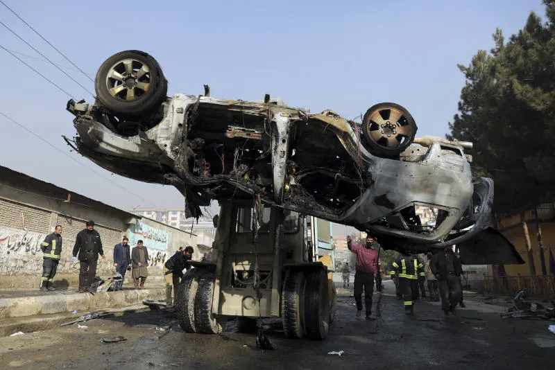 أفراد من الأمن يحملون حطام سيارة مفخخة في كابل (أرشيفية - أ.ب)