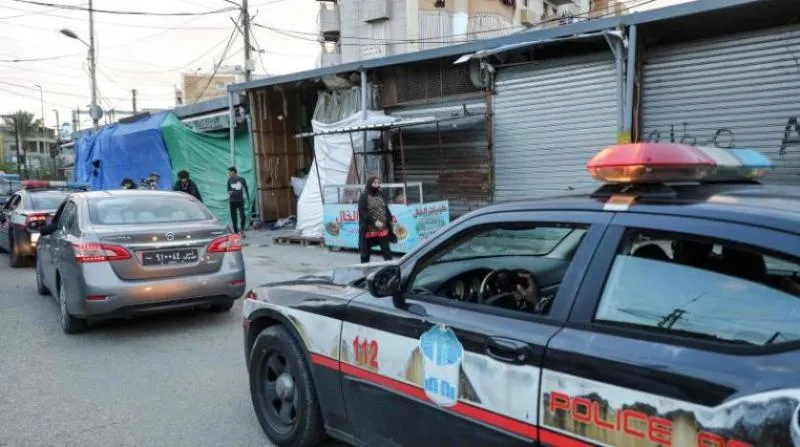 سيارات للشرطة في بيروت لضمان الالتزام بالإغلاق (أ.ف.ب)