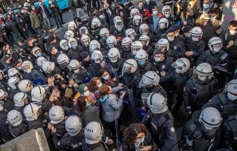وقال مكتب حاكم إسطنبول إن المحتجين انتهكوا حظراً على الاحتجاجات العامة والتجمعات والمسيرات بسبب جائحة «كوفيد-19».