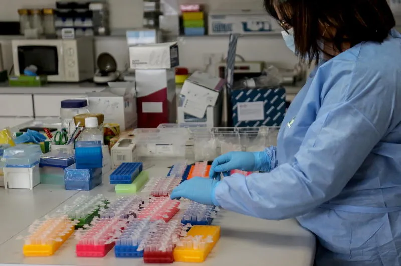 عاملة في مختبر مستشفى رفيق الحريري في بيروت تحلل اختبارات لكشف «كوفيد-19» (إ.ب.أ)