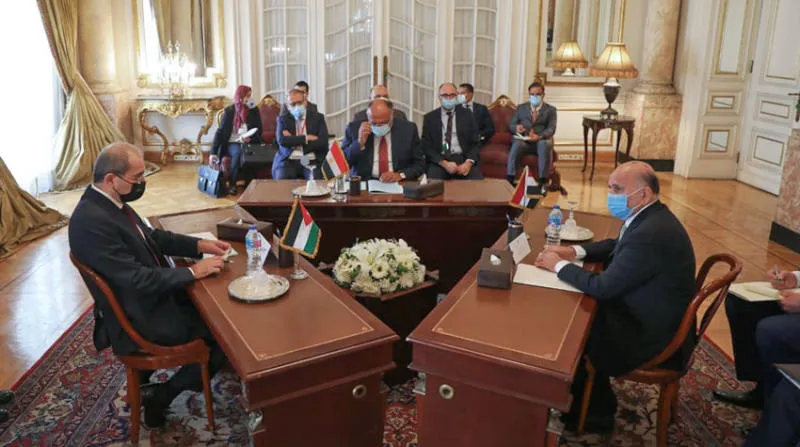 اجتماع تشاوري بين وزراء خارجية مصر والأردن والعراق سبق اجتماع الجامعة العربية أمس (أ.ف.ب)