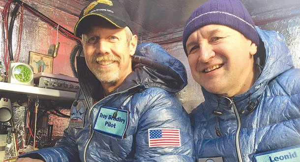 تروي برادلي من نيو مكسيكو والروسي ليونيد تيوختياف داخل المنطاد (أ.ب)