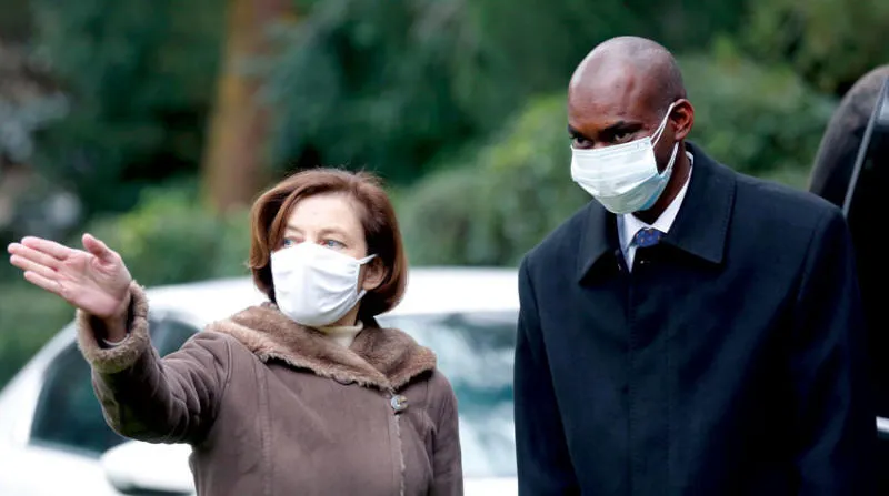وزيرة الدفاع الفرنسية فلورانس بارلي مع وزير دفاع مالي ساديو كمارا في باريس الشهر الماضي (أ.ب)
