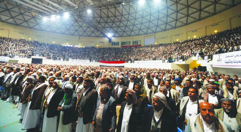 أنصار الحركة الحوثية في اليمن خلال اجتماع لهم في صنعاء أمس (رويترز)