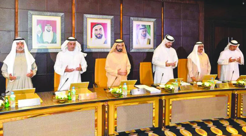 ترأس الشيخ محمد بن راشد آل مكتوم نائب رئيس الدولة رئيس مجلس الوزراء حاكم دبي، جلسة للحكومة الإماراتية عقدت أمس، وقام في مستهل الجلسة بقراءة الفاتحة مع أعضاء مجلس الوزراء على روح فقيد الأمة العربية والإسلامية الملك الراحل عبد الله بن عبد العزيز.