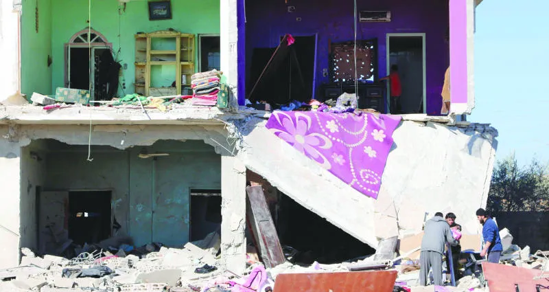 سكان منزل مدمر بقرية صيدا بريف درعا يعاينون ما تبقى من حاجياتهم بعد قصف لطيران النظام (رويترز)