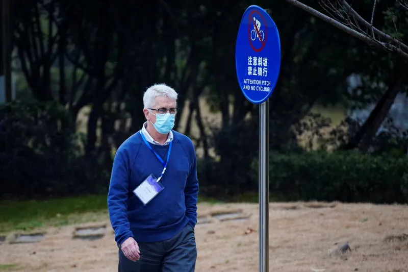 دومينيك دواير عضو فريق منظمة الصحة العالمية للتحقيق بأصول كورونا يمشي في مدينة ووهان الصينية (رويترز)