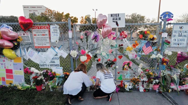 وفتح نيكولاس كروز، البالغ 19 عاما، النار في معهد «مارغوري ستونمان دوغلاس» الثانوي جنوب شرقي فلوريدا عام 2018، ما أسفر عن مقتل 14 طالبا وثلاثة مشرفين قبل أن يتم القبض عليه. وكان كروز قد طرد من المعهد قبل ذلك بعام «لأسباب تأديبية»، وتمكن من شراء رشاش نصف آلي بشكل قانوني رغم أن سجله يحوي مشاكل نفسية.