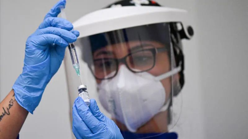 ممرضة تعدّ جرعة من لقاح «فايزر» في أحد مراكز التطعيم بكولومبيا (أ.ف.ب)
