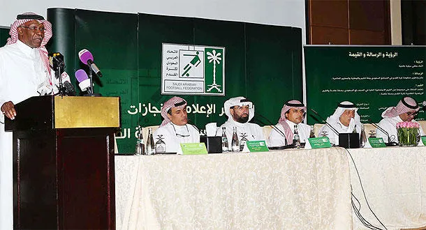 وتحدث عيد في مؤتمر صحافي تم عقده يوم أمس بمدينة جدة بحضور الدكتور عبداللطيف بخاري رئيس لجنة الدراسات الاستراتيجية والدكتور عبدالله البرقان رئيس لجنة الاحتراف وعدنان المعيبد رئيس اللجنة المالية والدكتور خالد المقرن رئيس لجنة المسابقات وخالد الزيد المشرف على الفئات السنية في المنتخبات وصالح أبو نخاع المشرف على المنتخب الأولمبي وسعد الأحمري نائب رئيس لجنة الحكام.