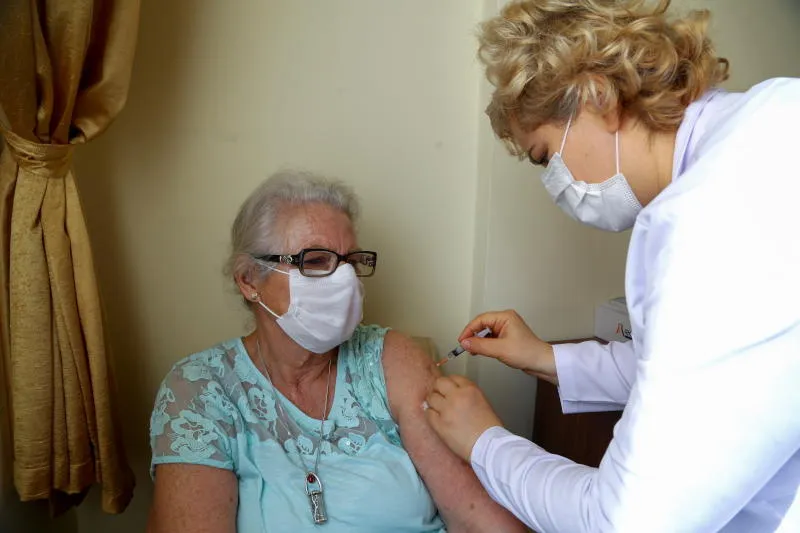 امرأة هولندية تتلقى الجرعة الأولى من لقاح فيروس كورونا في مركز للرعاية الصحية حيث يستمر التطعيم في مدينة ألانيا التركية على البحر المتوسط (رويترز)