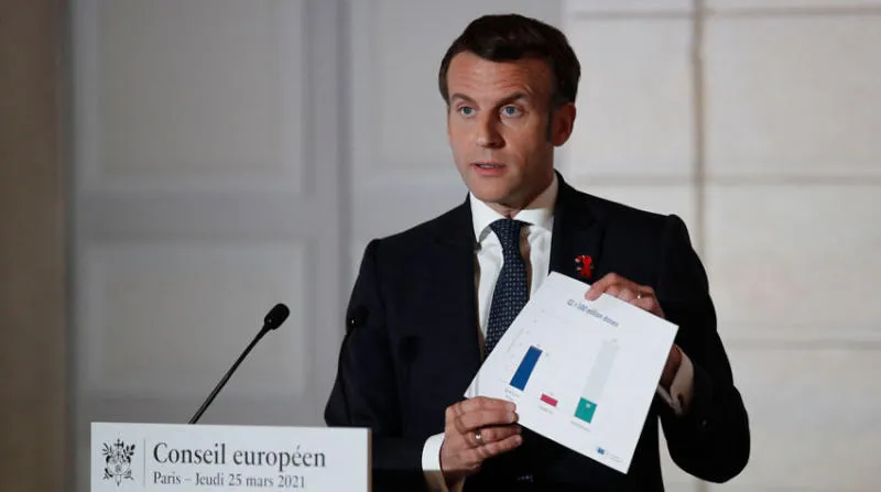 منذ اندلاع أزمة الفيروس، ندّد ماكرون في أكثر من مناسبة بـ«التبعية» الأوروبية في الميدان الطبي والدوائي واليوم اللقاحي. ودعا الرئيس الفرنسي بإلحاح الأوروبيين إلى السعي لتوفير «السيادة الصحية وإلى إنتاج الأدوية واللقاحات والعقاقير على الأراضي الأوروبية. فمن النقص في العثور على الكمامات بداية، إلى النقص في أجهزة التنفس الصناعي والاختبارات لكشف الإصابة بالوباء، وصولاً إلى اللقاحات، بيّنت أوروبا التي يسميها ماكرون (القارة الوحيدة في العالم الحر)»، مستعيداً بذلك مفردات الحرب الباردة، عن عجز فاضح في التعامل مع الوباء.
