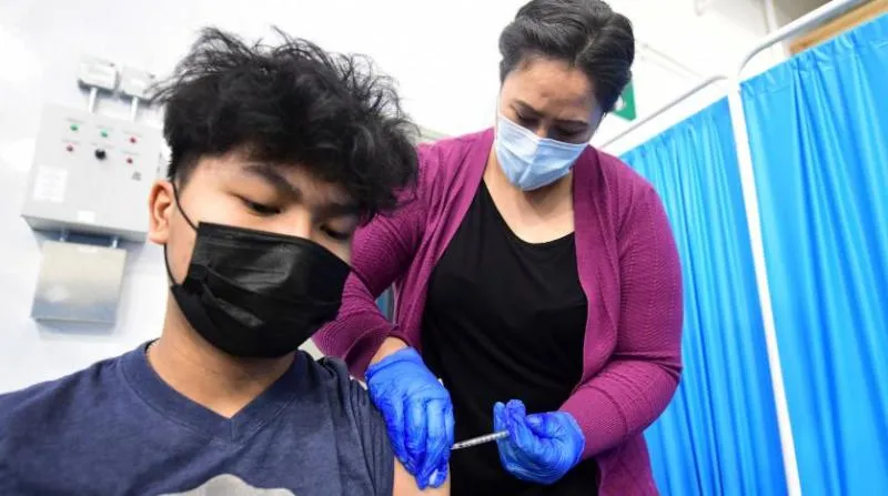 شاب يتلقى اللقاح المضاد لـ«كوفيد 19» في ألاسكا (أ.ف.ب)