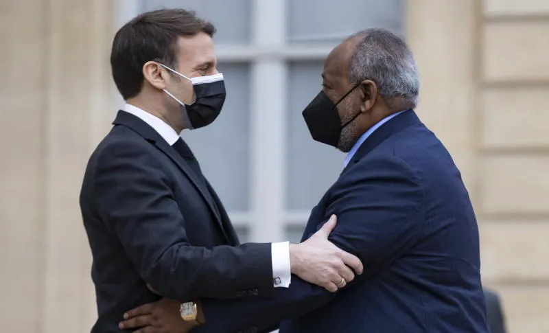 الرئيس الفرنسي إيمانويل ماكرون ونظيره الجيبوتي إسماعيل عمر غله في قصر الإليزيه (أرشيفية - إ.ب.أ)