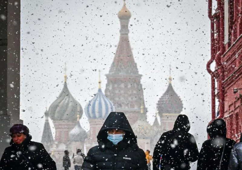 رجل يضع قناع الوجه الواقي خلال تجوله في العاصمة الروسية موسكو (أ.ف.ب)