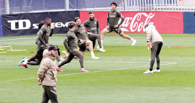 لاعبو أتلتيكو بقيادة المدرب سيميوني يدركون أن أي إهدار للنقاط سيفقدهم الصدارة (إ.ب.أ)