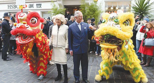 وفي لندن، زار الأمير تشارلز أمير ويلز وولي عهد المملكة المتحدة، الحي الصيني في لندن، للمشاركة في احتفالات رأس السنة الصينية الجديدة، وكان في صحبته دوقة كورنووال. وقد شوهد الأمير تشارلز يتبادل المزاح مع عدد من الصينيين في المنطقة.