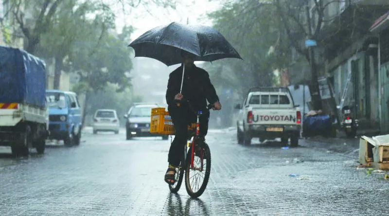فلسطيني يحتمي بمظلة من الأمطار الغزيرة التي ضربت جل المدن الفلسطينية أمس (أ.ف.ب)
