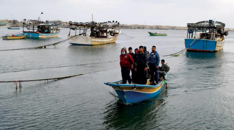 صيادون من غزة يعودون إلى الشاطئ بعد إغلاق إسرائيل منطقة الصيد (رويترز)