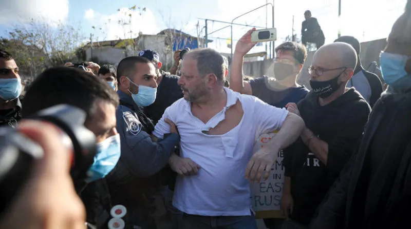 صدام الشرطة مع عوفر كاسيف اليهودي الوحيد في «تحالف الأحزاب العربية» أثناء احتجاج على إخلاء للفلسطينيين بالقدس الشرقية (أ.ب)