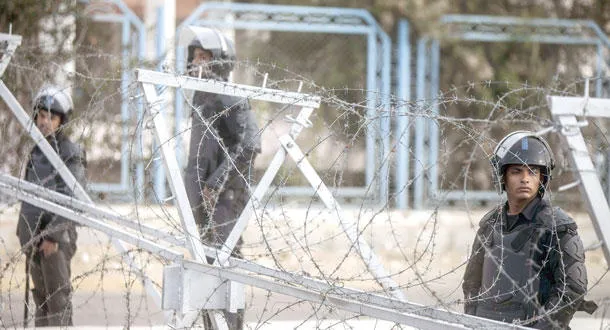 إجراءات أمنية مشددة خارج محكمة جنايات القاهرة التي نظرت جلسة محاكمة مرسي و14 آخرين من الجماعة أمس (أ.ف.ب)