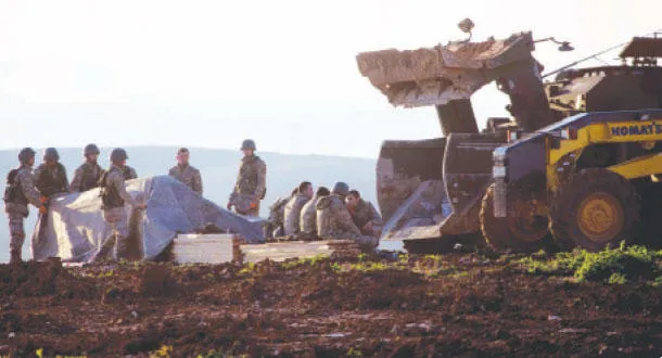 قوات تركية تبدأ العمل على بناء ضريح جديد لسليمان شاه في محافظة حلب السورية أمس (أ.ب)
