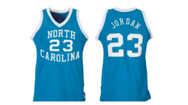 بيع قميص يخص أسطورة كرة السلة مايكل جوردان من فترة اللعب بدوري الجامعات في نورث كارولاينا مقابل 1.3 مليون دولار في دار «هريتيدغ» للمزادات.