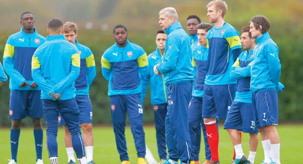ارسين فينغر مدرب آرسنال يلقي بتعليماته على لاعبيه قبل مواجهة موناكو (رويترز)