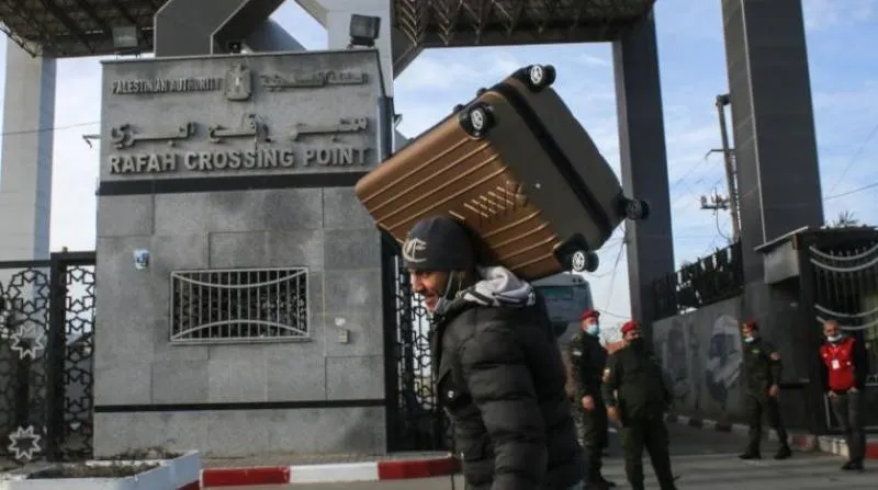 رجل يحمل حقيبة على كتفه أمام معبر رفح الحدودي مع مصر (أرشيفية - أ.ف.ب)