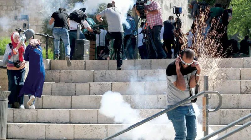 القوات الإسرائيلية تواجه متظاهرين في القدس الشرقية تضامناً مع أهالي غزة (رويترز)