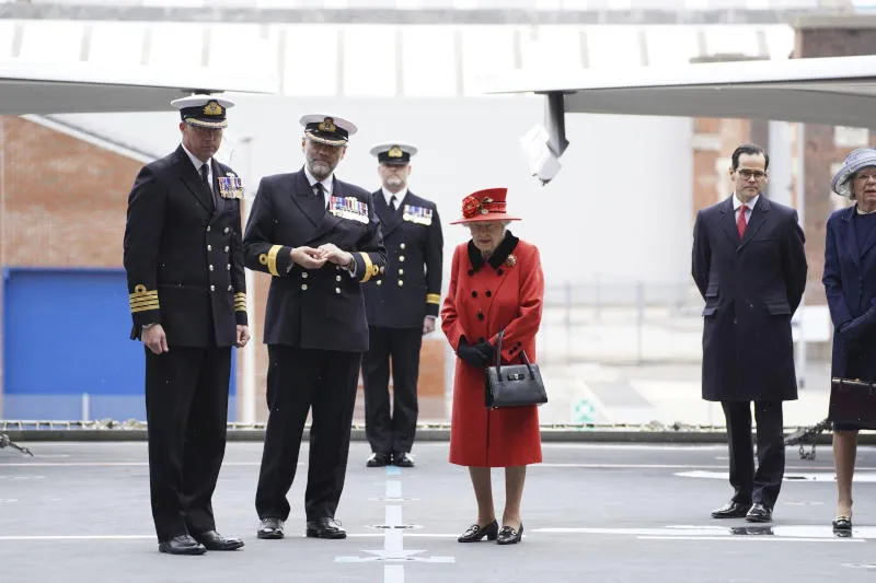 وصعدت الملكة البالغة من العمر 95 عاماً على متن حاملة الطائرات «إتش. إم. إس كوين إليزابيث» في بورتسموث بعد سبع سنوات من إعلانها اختيار هذا الاسم لحاملة الطائرات مع زوجها الأمير فيليب الذي توفي الشهر الماضي.