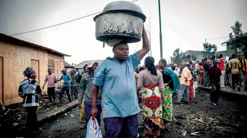 سكان يغادرون منازلهم في غوما بعد انفجار بركان أمس (أ.ف.ب)