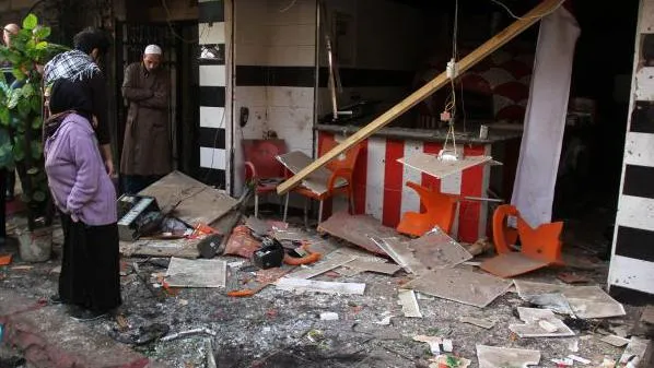وأظهرت لقطات تلفزيونية واجهة المطعم الصغير وقد تحطمت، وكذلك آثار حطام في الشارع.