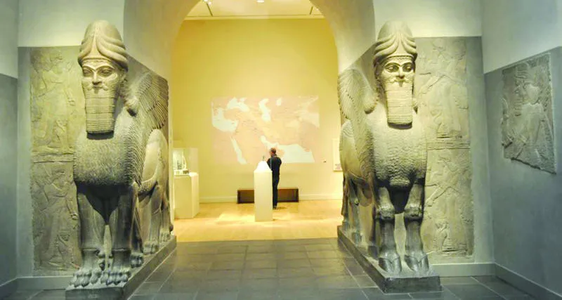 ثيران مجنحة نقلت من مدينة نمرود عاصمة الآشوريين في نينوى إلى متحف المتروبوليتان في نيويورك («الشرق الأوسط»)