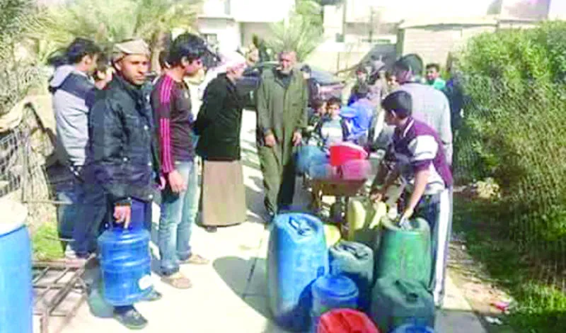 حشود من أهالي بلدة البغدادي يحاولون الحصول على مياه الشرب («الشرق الأوسط»)
