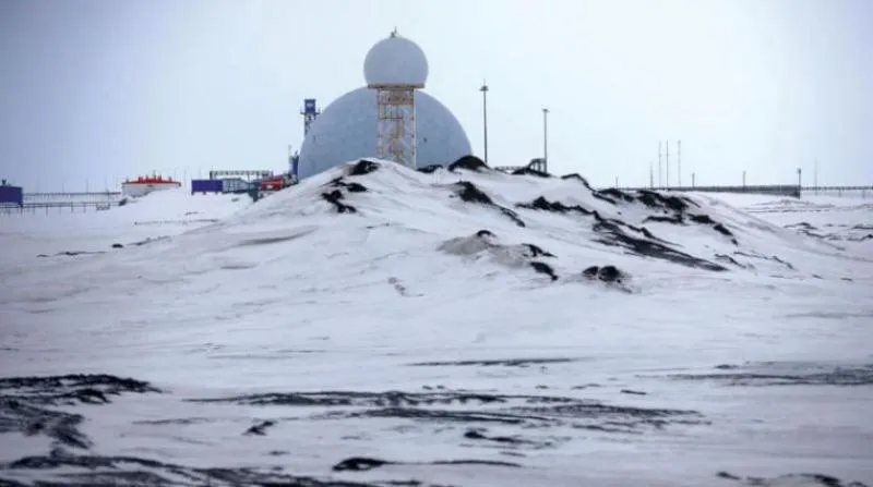 منشأة تضم صواريخ وراداراً على جزيرة ألكسندرا في منطقة عسكرية تابعة لروسيا في القطب الشمالي (أ.ب)