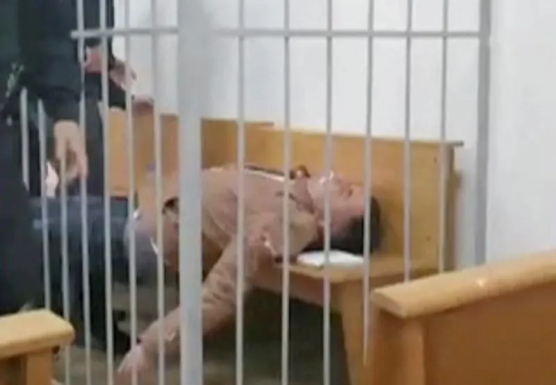 وقالت المنظمة إن ستيبان لاتيبوف اعتلى مقعداً في قفص الاتهام «لمنع الحراس من الوصول إليه» ثم «طعن نفسه في حنجرته بأداة تشبه القلم». وأضافت المنظمة غير الحكومية «تحول لون ستيبان إلى الأزرق واستلقى على المقعد، وتم استدعاء سيارة إسعاف»، بحسب ما نقلته وكالة الصحافة الفرنسية.