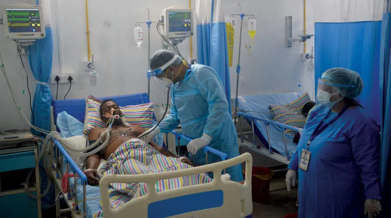 طبيب يعاين مريضاً بـ«كورونا» في أحد مستشفيات الهند (أ.ف.ب)