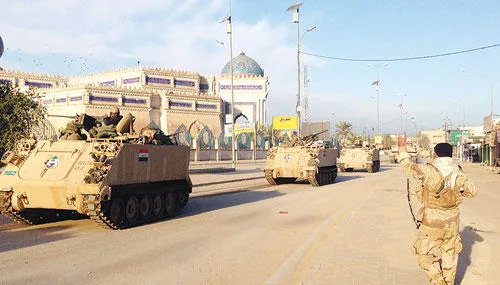 رتل عسكري يتحرك خلال مواجهات بين القوات الحكومية ومسلحي «داعش» بمحافظة الأنبار أول من أمس (رويترز)