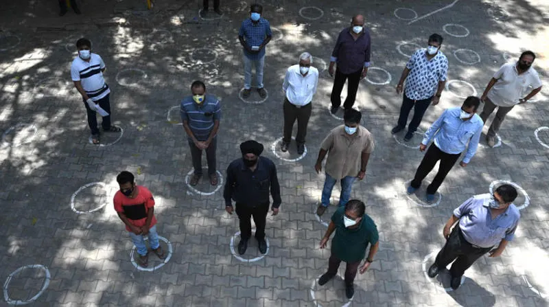 مواطنون ينتظرون الحصول على لقاح ضد «كورونا» في تشيناي عاصمة ولاية تاميل نادو بالهند أمس (أ.ف.ب)
