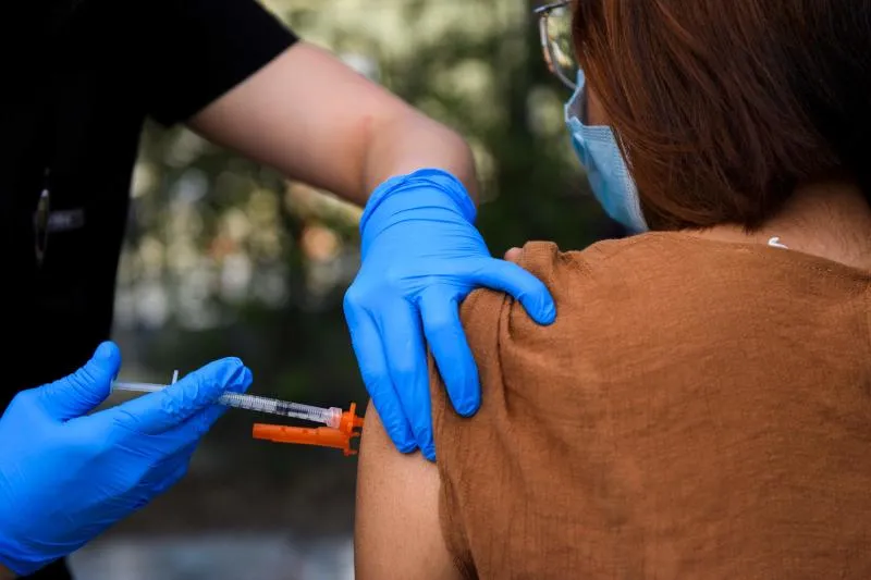 مراهقة تتلقى جرعة من لقاح فايزر المضاد لفيروس كورونا في ولاية كاليفورنيا الأميركية (أ.ف.ب)