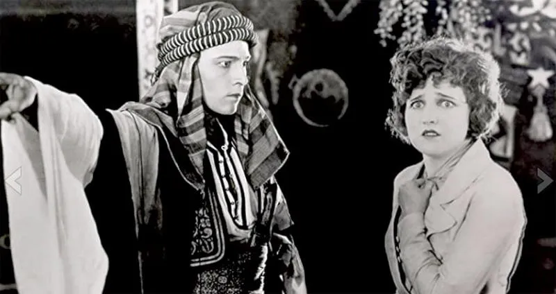 لم يكن «الشيخ» لجورج ملفورد، الفيلم الأول الذي يتعامل وشخصية «الشيخ العربي» لكنه بات أشهرها. وواحد من أهم أسباب شهرته بطله رودولف فالنتينو الذي كان يتمتع بوسامة واضحة وباسم ليس بحاجة للدعاية عنه. لكن فالنتينو لم يكن ممثلاً جيّـداً. وفي دور العربي، أو «الشيخ» ليس حتى متوسطاً. كان، في وقته، صورة لشاب بأمارات وجه جذّابة لا عليه أن يتكلّم لأن أفلام ذلك الزمن كانت صامتة.