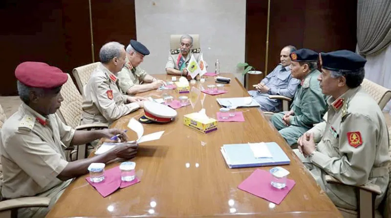صورة وزعها مكتب رئيس أركان الجيش الليبي لاجتماعه بمسؤولي مناطق الجنوب