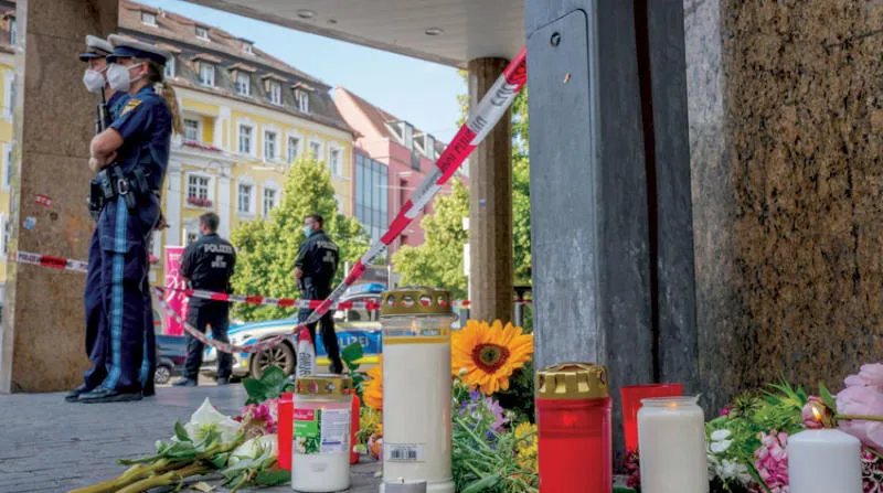 أكاليل ورود أمس على أرواح 3 نساء سقطن طعناً في وسط مدينة فورزبيرغ بولاية بافاريا (أ.ب)