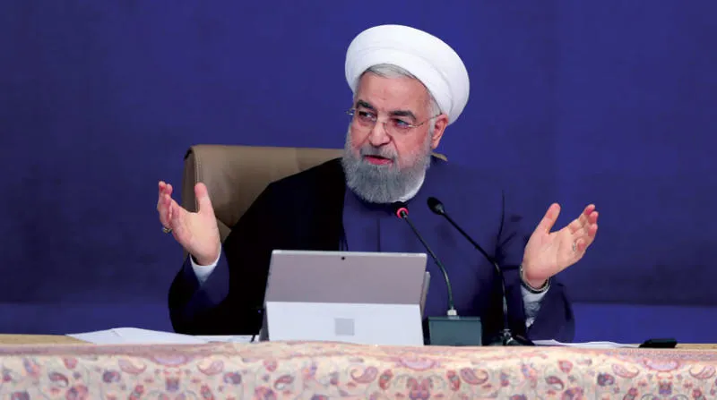 الرئيس المنتهية ولايته حسن روحاني يتحدث في اجتماع الحكومة أمس (الرئاسة الإيرانية)
