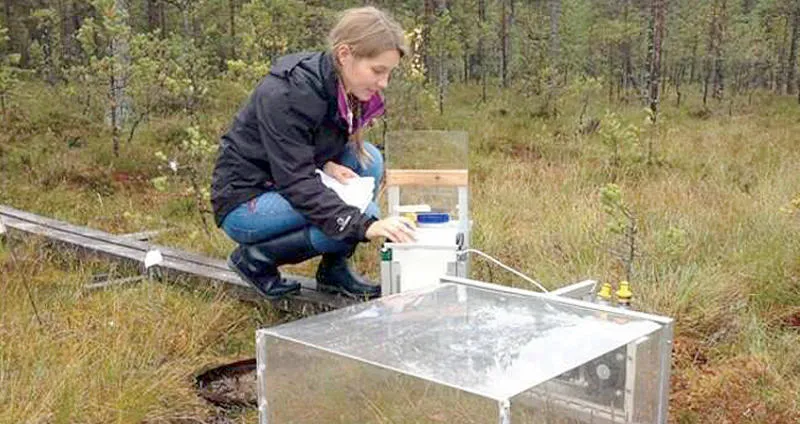 باحثة تتابع التجربة التي أجريت خلال الدراسة البريطانية