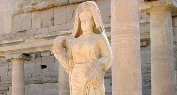 تمثال امرأة يعتقد أنها زوجة ملك يتوسط قصرا في موقع الحضر الأثري جنوب الموصل (أ.ب)